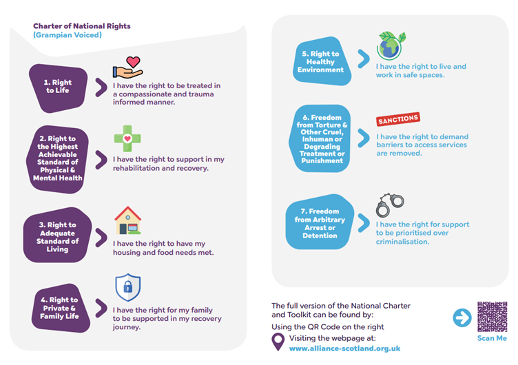 👉 The Grampian-Voiced Charter builds on the National Charter of Rights for People Affected by Substance Use, making the rights real and meaningful in our local communities.